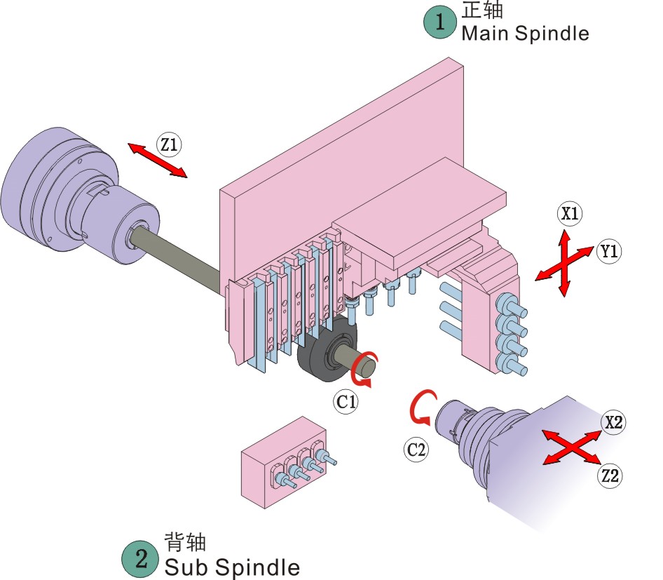 移動軸數5軸X 1 、Y 1 、Z 1 、X 2 、Z 2
