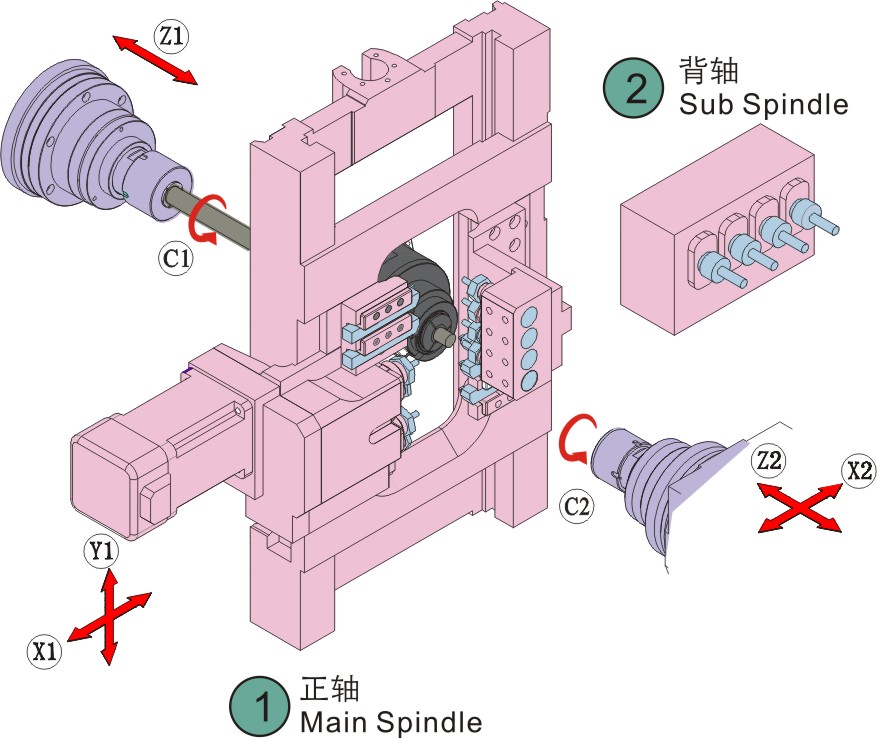 移動軸數5軸X 1 、Y 1 、Z 1 、X 2 、Z 2